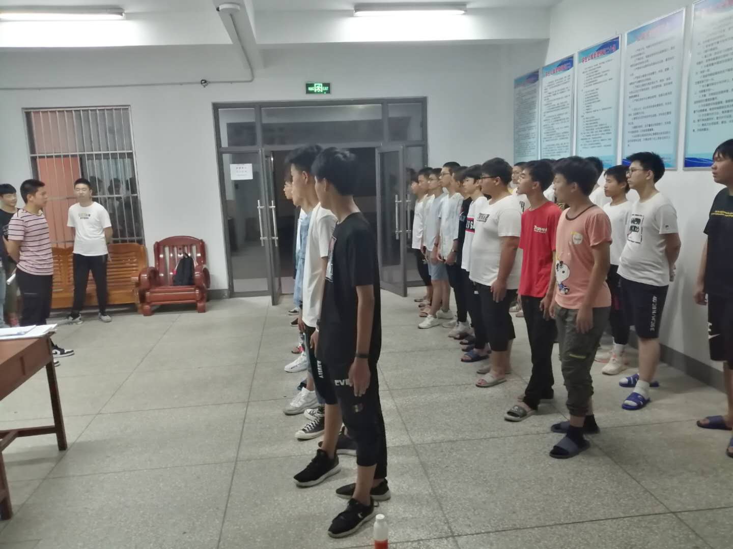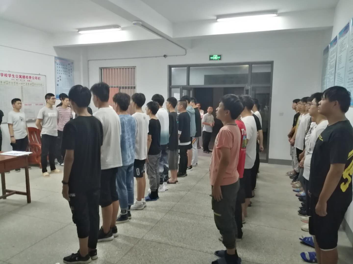 对口单招部于9月13日晚上十点在一号宿舍楼大厅举行了新生宿舍楼管理工作周例会,会议由宿管樊集春、张耀恒主持,楼长、层长及高一新生室长25人参与了会议。
