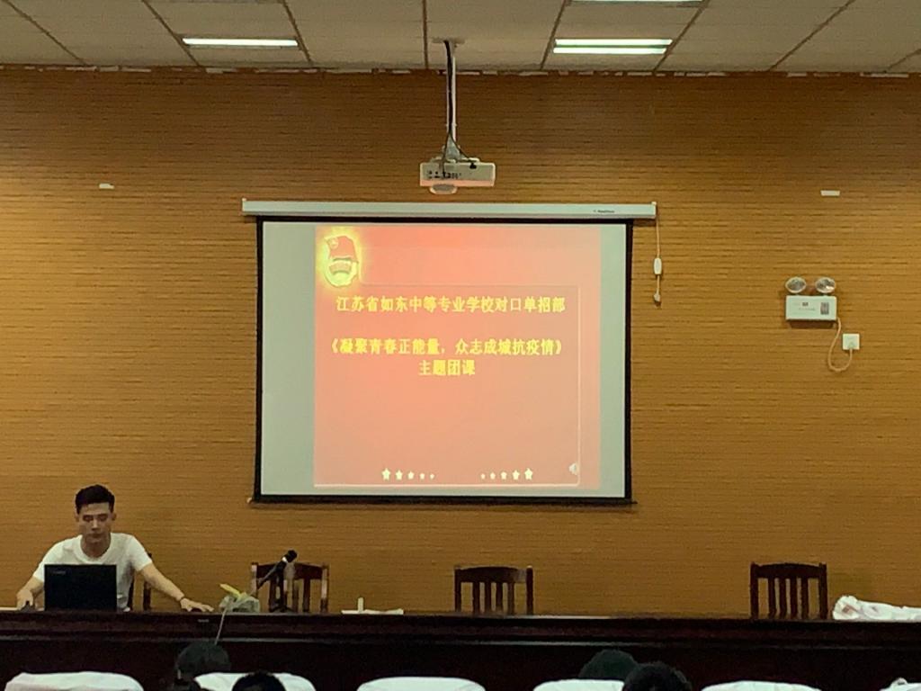 党有号召,团有行动。疫情期间,为了提高学生团员的防控意识,增强疫情健康理念,6月30日,江苏省如东中等专业学校对口单招部开展了“凝聚青春正能量,众志成城抗疫情”主题团课,对口单招部的共青团员参加了此次团课学习。团课开始前,团支部书记赵志鹏带领大家重温入团誓词,主题团课上,赵书记带领团员学习了如何防控新冠病毒的知识,学习了许多共同抗击疫情的正能量的知识,相信大家一定能以抗疫前线的先进典型、感人事迹和身边的抗疫学子为例,学习、传承并发扬雷锋精神,积极行动,万众一心,从我做起,联防联控,群防群控,为坚决打赢疫情防控阻击战贡献青春力量!