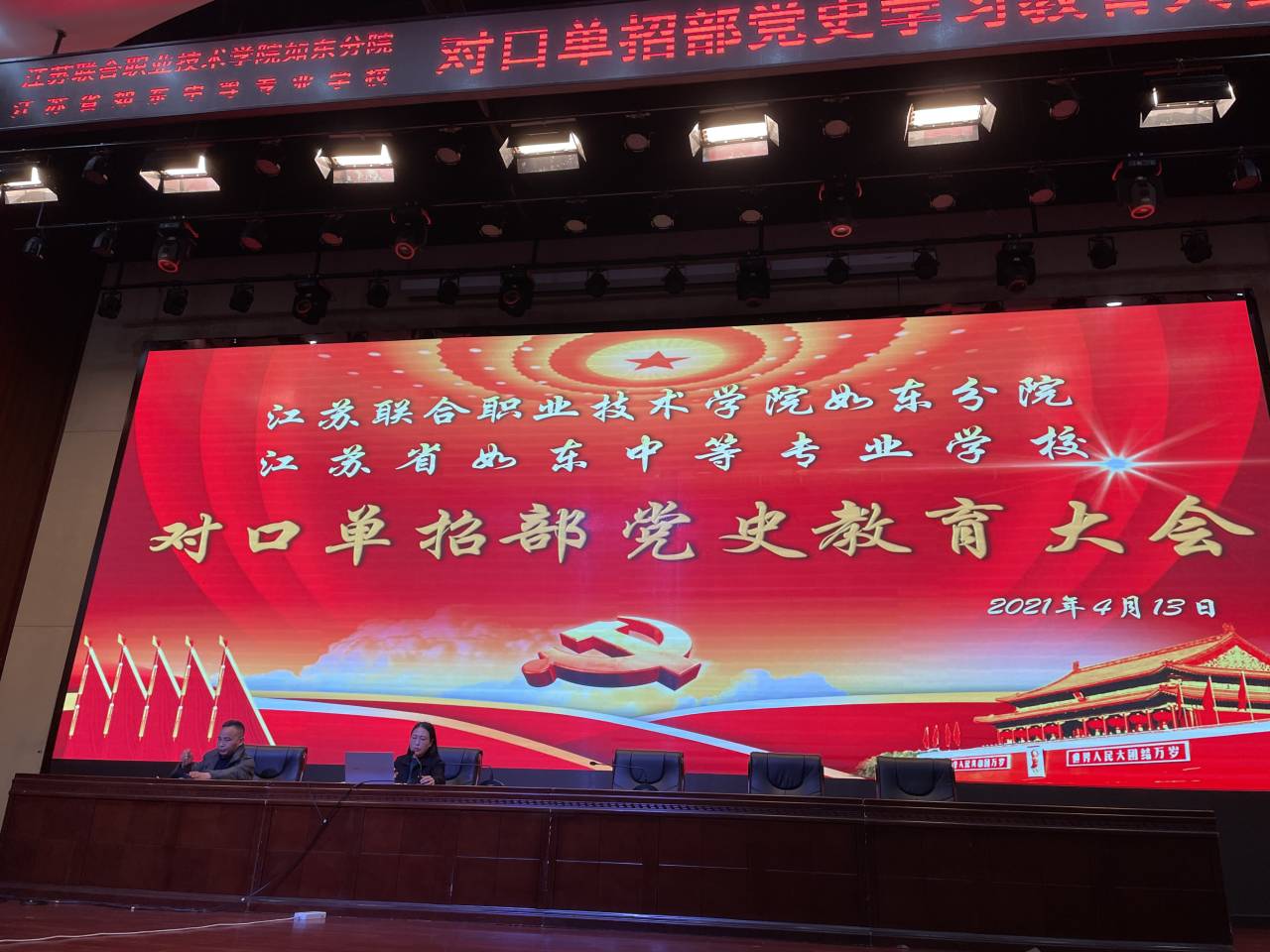 为庆祝中国共产党成立 100 周年,教育引导师生学党史、听党话、跟党走,努力成长为能够担当民族复兴大任的时代新人,对口单招部日前组织师生开展了题为“百年恰是风华正茂”的党史教育大会。专业部主任、年级组长、全体正副班主任老师及高一、高二年级的全体同学参加了大会。党史教育由对口单招党支部唐小慧副书记主讲。