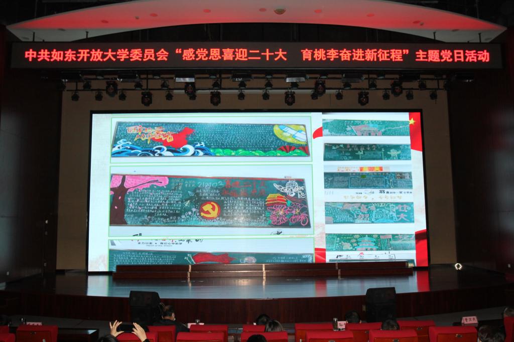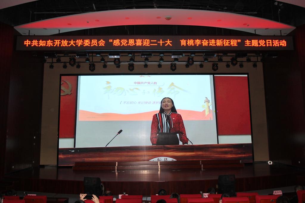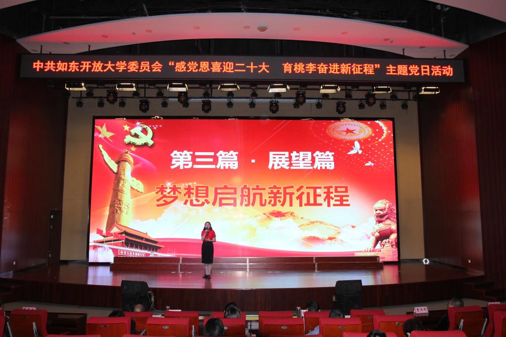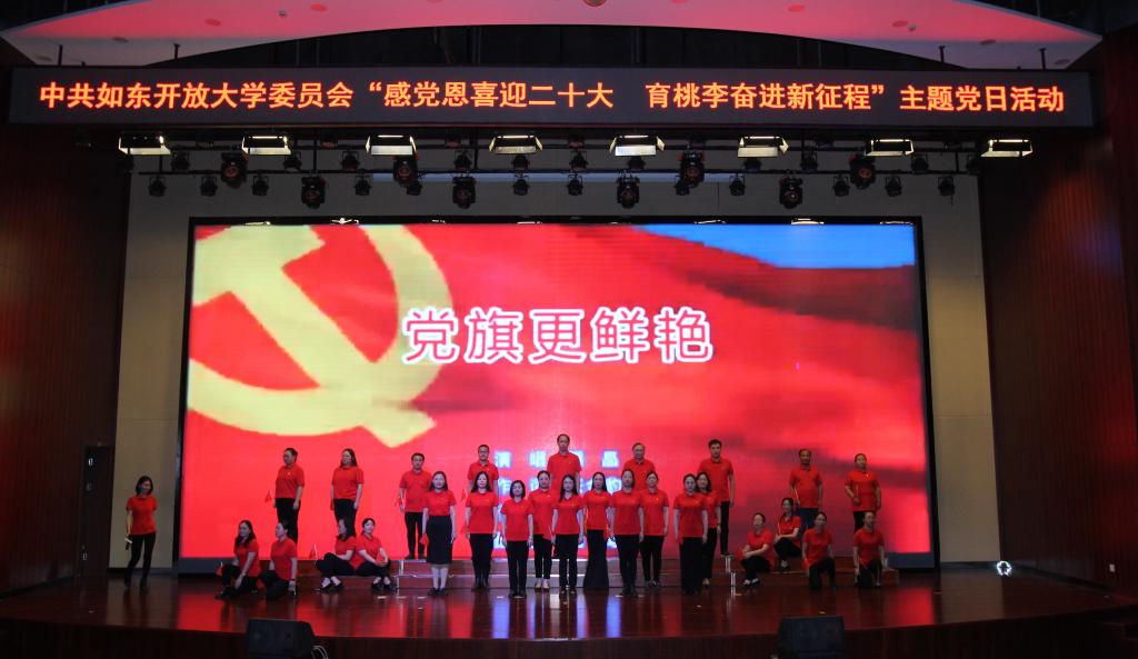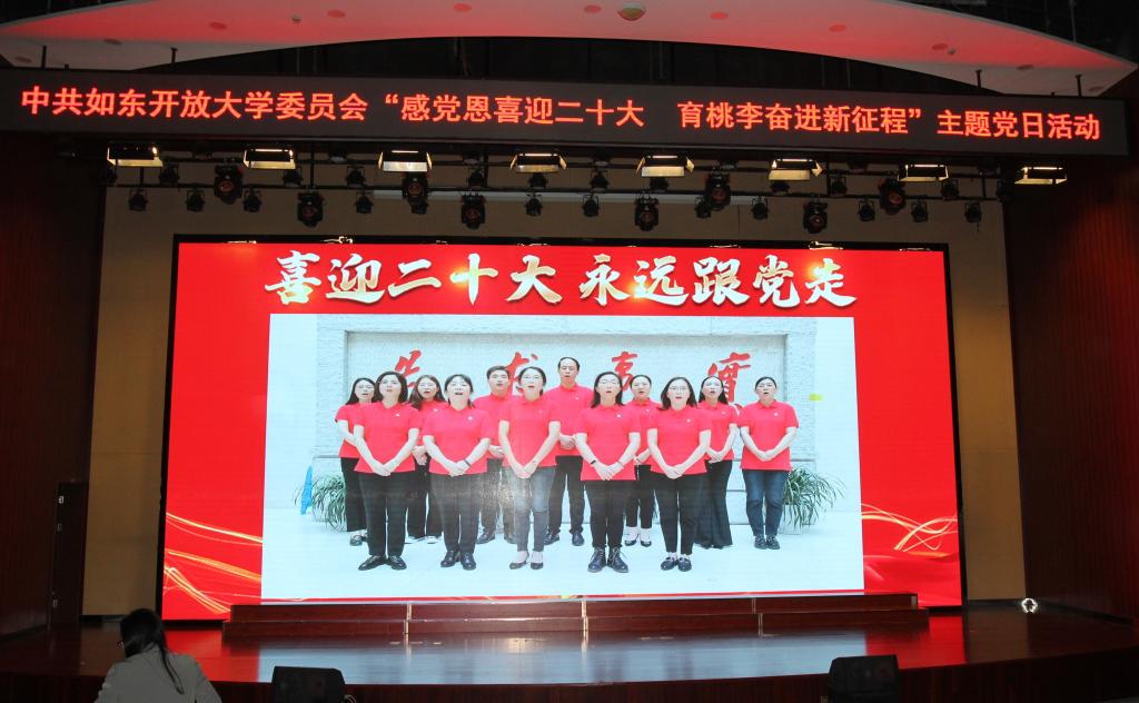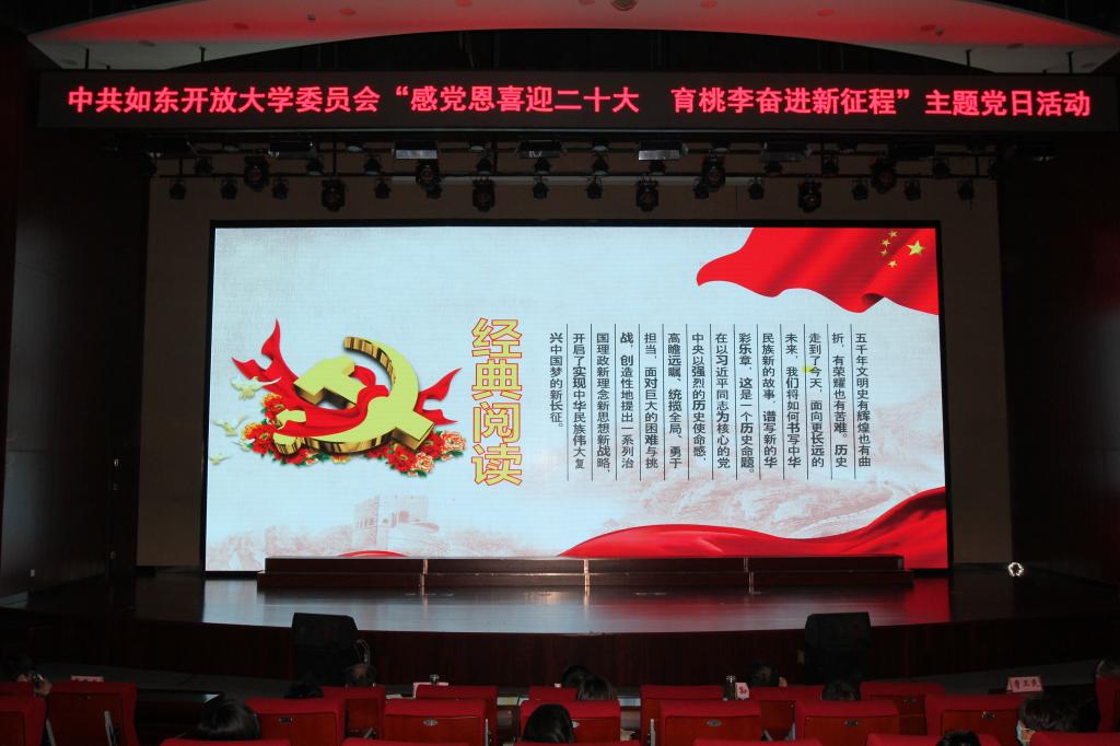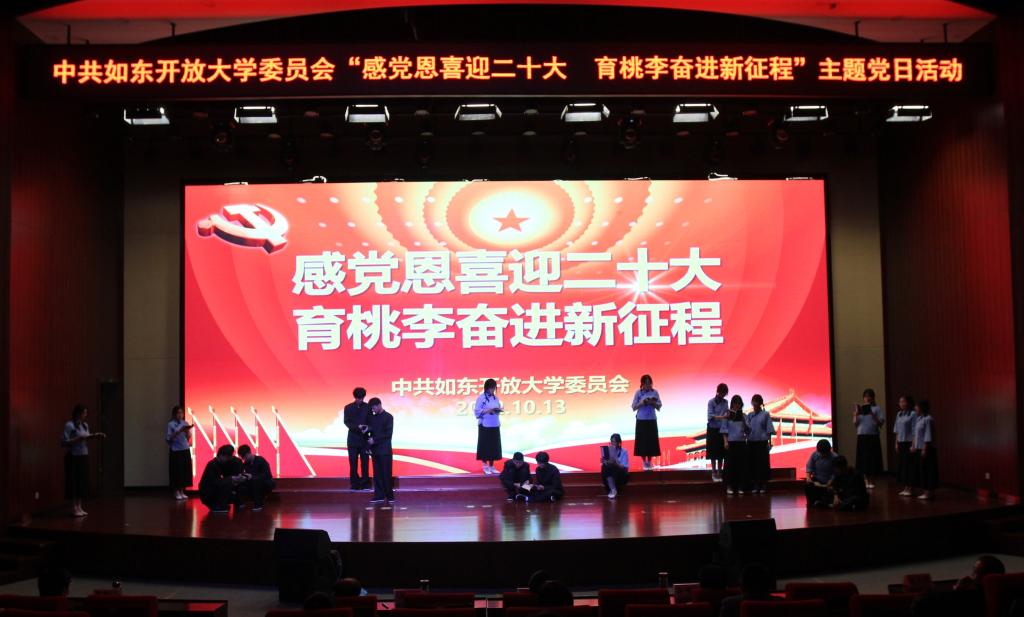在党的二十大即将召开之际,中共如东开放大学党委会全体党员于2022年10月13日下午在求是楼敬德堂参加了“感党恩喜迎二十大,育桃李奋进新征程”主题党日活动。