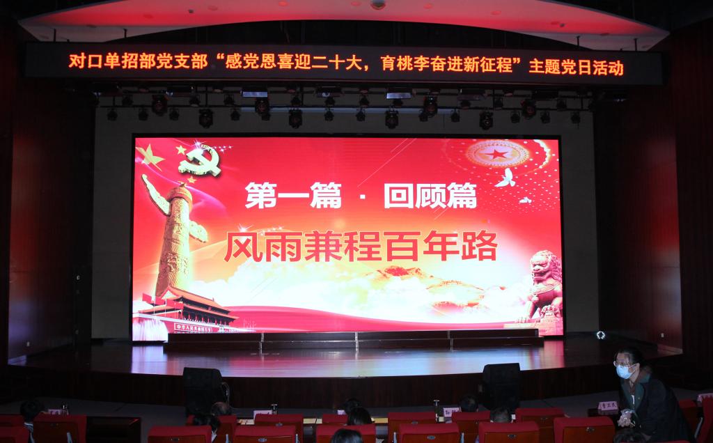 本次活动由对口单招部党支部精心组织,系我校“喜迎二十大”系列活动之一,也是我校第六场特色“主题党日+”系列活动。校党委书记余飞,党委委员丛杰、孙智明、曹卫民、肖海兵、唐晓云及全体党员同志到场观摩了本次活动。