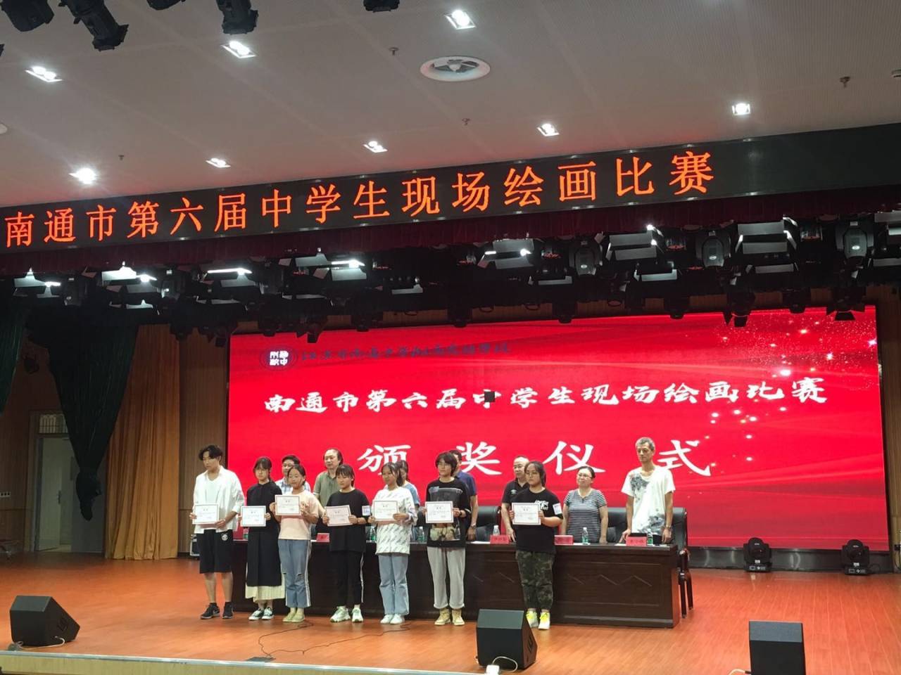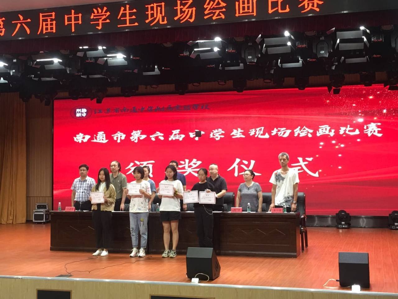 8月29日由吴百军老师带队的江苏省如东中等专业学校对口单招部工艺美术专业的7名学生,参加了由南通市教育局举办的南通市第六届中学生现场绘画比赛,本次比赛地点在江苏省南通中学附属实验学校。8月18日如东县教育体育局举办了如东县第三届中学生现场写生比赛暨市选拔赛,素描、色彩两组别县(市、区)各有4个名额出线参加市赛,如东中专对口单招部工艺美术专业21人参加如东赛区素描和色彩组别的选拔,7人获得市赛资格。28日上午9:10-11:40现场比赛,下午2:30现场颁奖,本次市赛获奖比例为60%,如东中专参赛学生中,有5人获奖,张石莉勇夺高中素描组一等奖,孙李宁、於萌洁获该组二等奖;顾家祺获色彩组一等奖、卫诚获三等奖,吴百军老师荣获南通市优秀辅导教师奖。学生们在老师的指导下用辛勤和汗水描绘着自己多彩的青春!