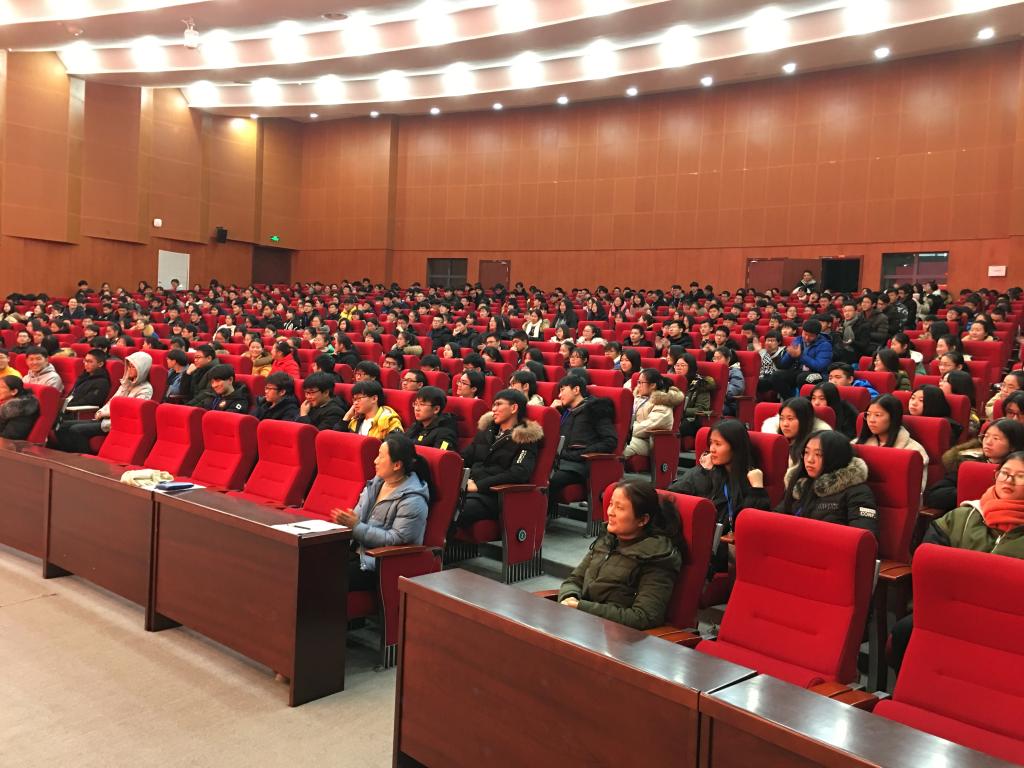 之后学校教务处陆海鸣主任代表学校对高三学生提出复习指导,她说最后的一百天,分秒必争,学生要有拼的精神,敢于迎接挑战,也要有合适的方法,可以借鉴别人的经验,可以听老师对高考的总结,提高学习的针对性,有助于更好的利用时间,发挥时间的最大利用效率,从而提高学习成绩,更好应对高考。