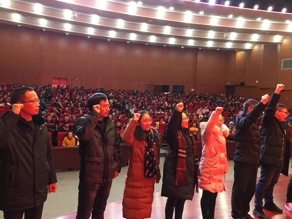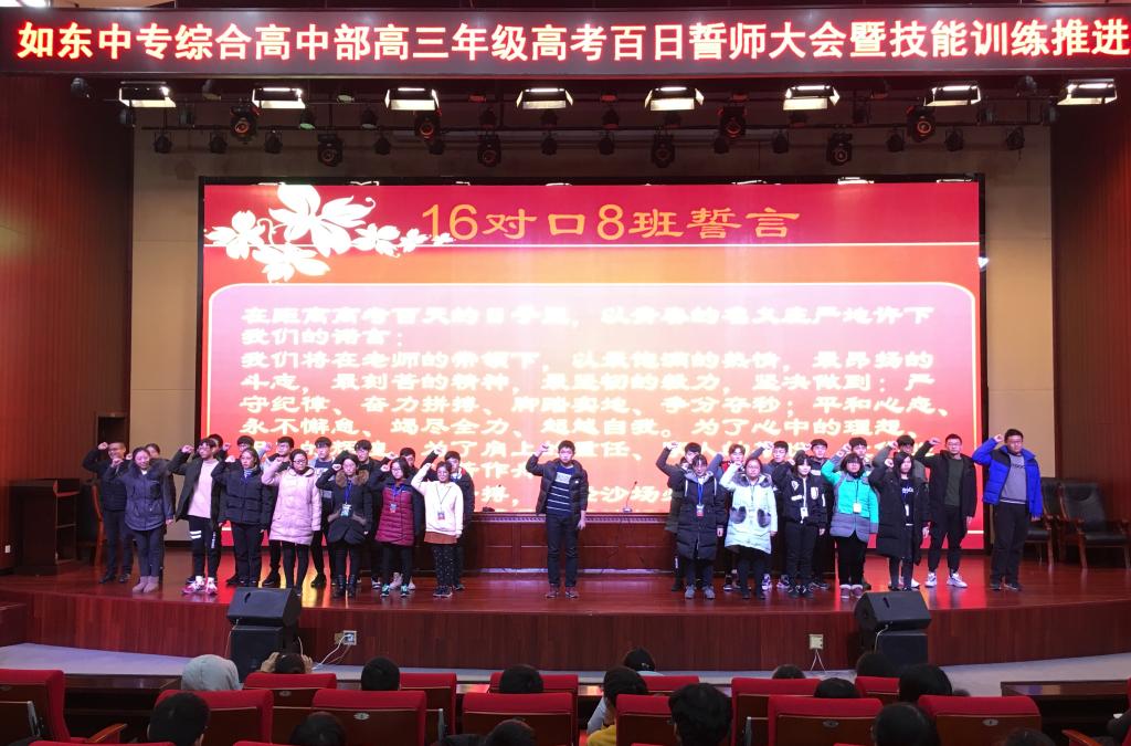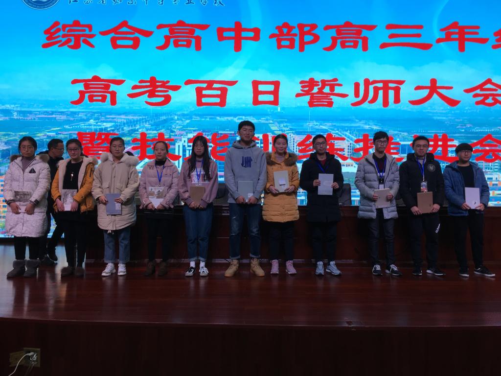 “十年磨剑争分夺秒谁与争锋,百日竞渡你追我赶舍我其谁。”2019年1月10日上午,综合高中部2019届高三年级全体师生在校大礼堂隆重举行“高考百日誓师大会”暨技能训练推进会。