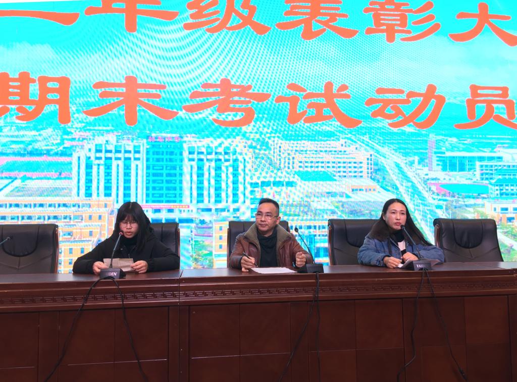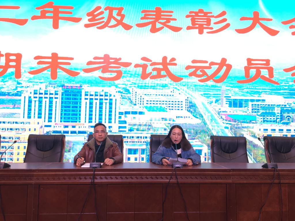 1月10日上午,综合高中部高二年级召开学期表彰大会暨期末考试动员会,布置期末相关工作。全体学生及班主任,高二年级主任参加了会议。