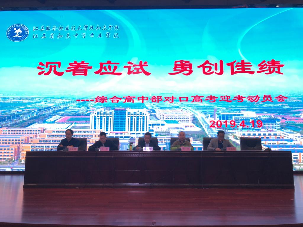 4月19日上午,综合高中部召开“沉着应试,勇创佳绩——2019年对口高考考前动员会”,校领导和高三年级全体老师一起,为即将奔赴考场的“勇士”们壮行。