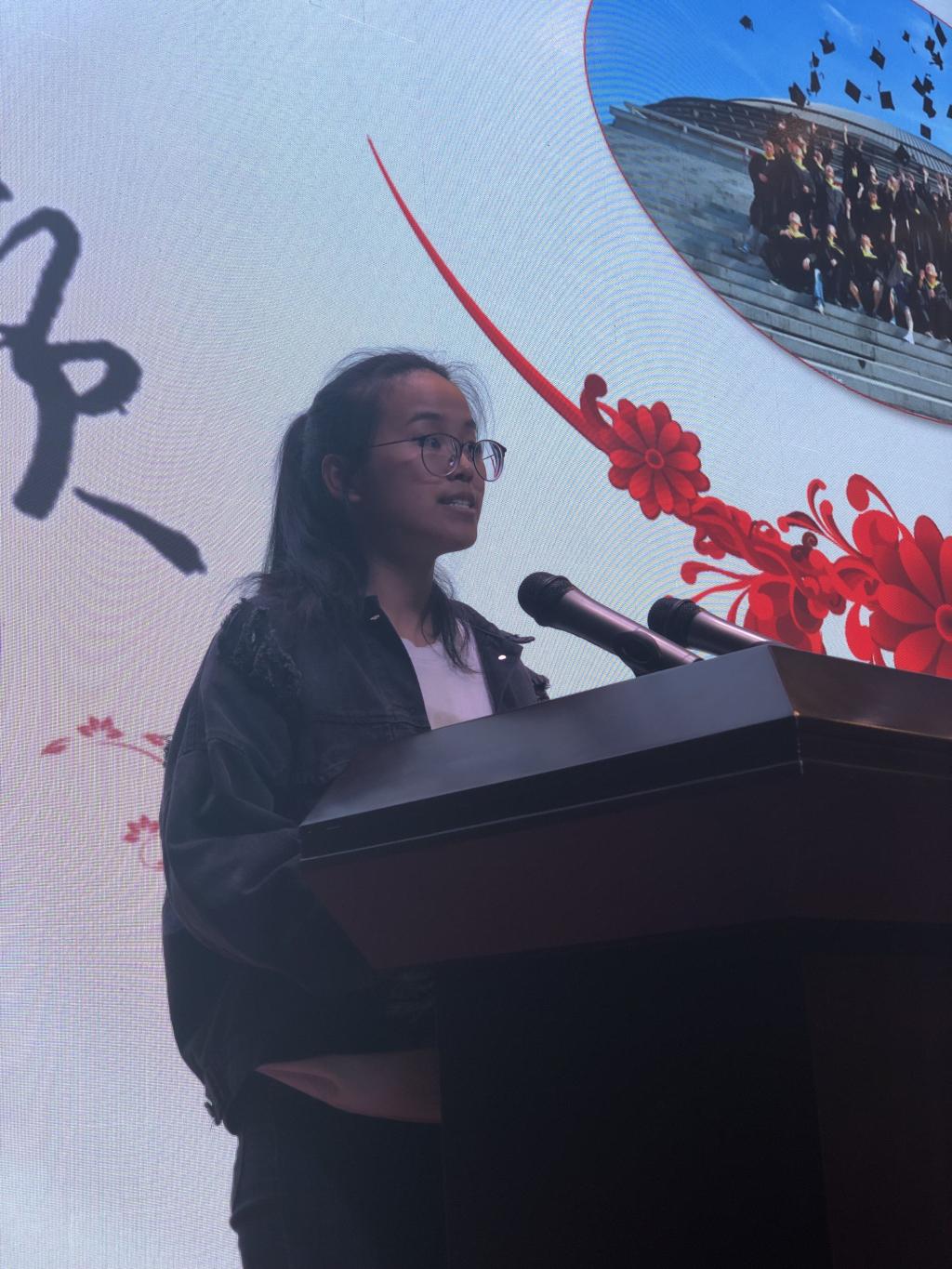接着,毕业生代表金李苏发言,感谢三年来学校的关怀,老师的教导,同学的鼓励帮助。