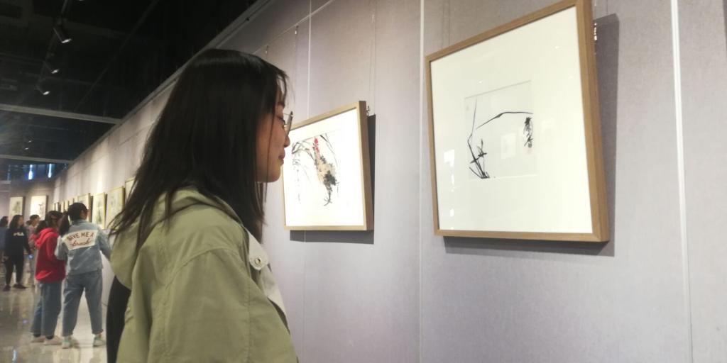 他们一边观展,一边聆听文化馆创作部桑俊主任的介绍:钱庚冬老师以中国画花鸟画见长,经过几十年的磨炼,创造了泼墨大写意的豪放风格。他的画坚守传统,以平易近人的绘画风格挥洒天真浪漫的自由。钱林老师的山水画大气磅礴,表达了画家对中国传统山水文化的深刻思考,用深沉的笔墨、绚丽的色彩,构建了既有传统又有新意的心象时空,意境迥异,独具匠心。他们的画作类型多样,独具风格,内容丰富,令师生们大开眼界。他们或驻足观赏,或窃窃私语,对展出的作品赞叹不已。