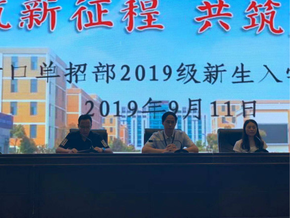 为了认真做好2019级新生入学教育工作,使广大新生尽快适应对口单招高中生活,端正学习态度,确立学习、生活目标,增强纪律观念,以良好的精神面貌投入到紧张的高中生活中去,9月11日中午,对口单招部高一新生在学校敬德堂召开新生入学教育大会。专业部花金明主任,年级陆建荣主任,以及初一年级所有班主任、副班主任出席了本次大会。