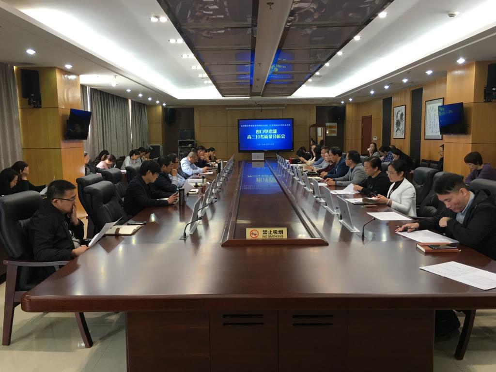 2019年10月18日上午,对口单招部高三全体教师在综合楼712会议室参加本学期高三年级第一次阶段性测试成绩分析会,参加会议的有余飞校长、曹峰副校长、孙智明副校长、曹卫民副校长、各职能部门主任、对口高中单招部花金明主任,陆建副主任、宋丽华副主任,陆建荣副主任,高三年级组长唐小慧老师及高三年级的全体老师。会议由曹校长主持。