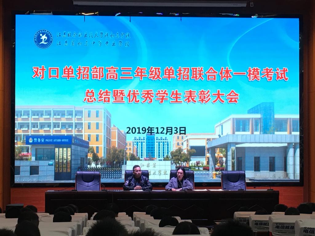 12月3日中午,如东中专对口单招部举行高三年级单招联合体一模考试总结暨优秀学生表彰大会。高三年级主任陆建、年级组长唐小慧、高三班主任及全体高三学生参加了本次会议。