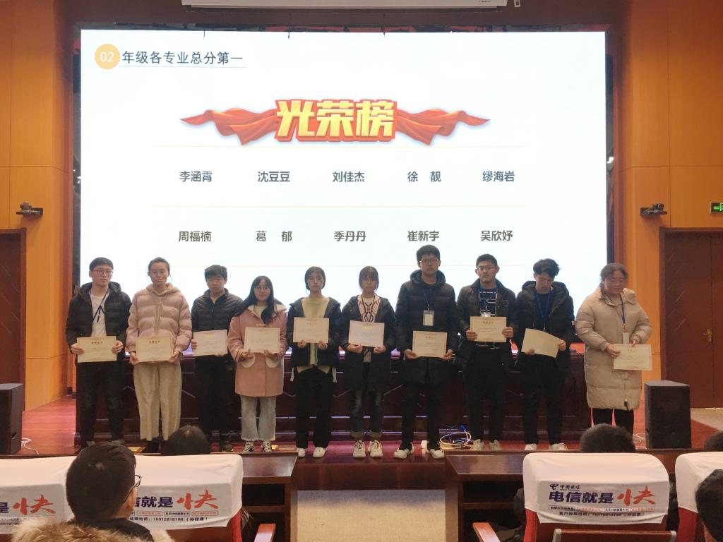 唐小慧组长宣读了表彰决定,并对本次测试中文化总分前20名、专业总分第一及联合体成绩优秀的学生进行了表彰。唐组长提到,学习如逆水行舟,不进则退。希望取得好成绩的同学再接再厉,成绩暂时落后的同学调整步伐,加快速度,迎头赶上,为即将结束的高中生活交上一份完美的答卷。