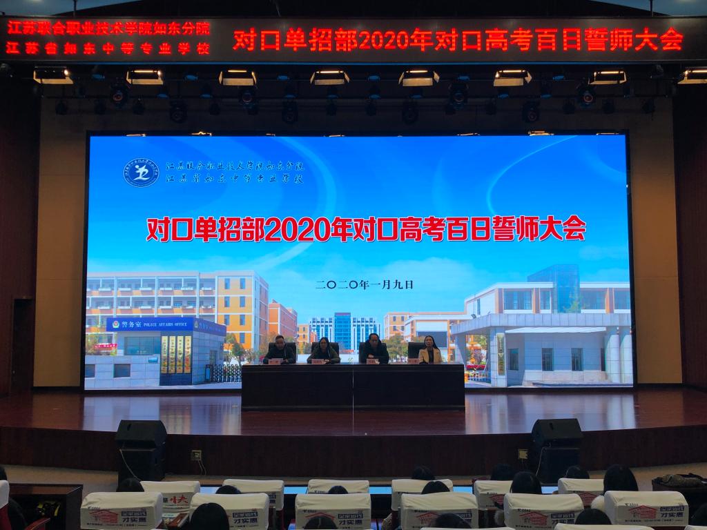 十年寒窗乘风浪,十年磨剑绽光芒。2020年1月9日下午,对口单招2020届高三年级全体师生在学校敬德堂隆重举行了“高考百日誓师大会”。