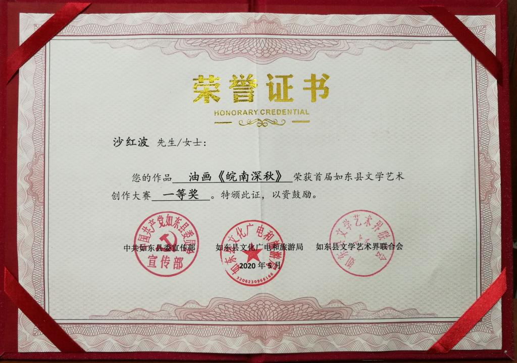 5月23日下午,我县召开了全县文艺工作座谈会,我校沙红波老师的油画作品《皖南深秋》获得首届如东县文学艺术创作大赛一等奖。