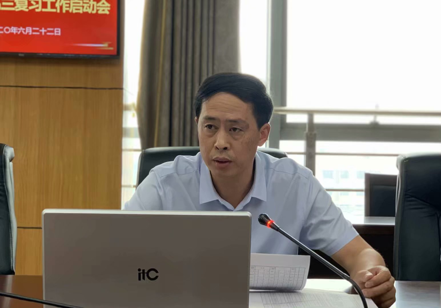 然后,新高三年级分管主任宋丽华就新高三班级的组建、教师团队的配备进行了说明,对后期教学整体进度、7月4日到7月14日的线上教学及暑假技能培训等工作进行了安排。