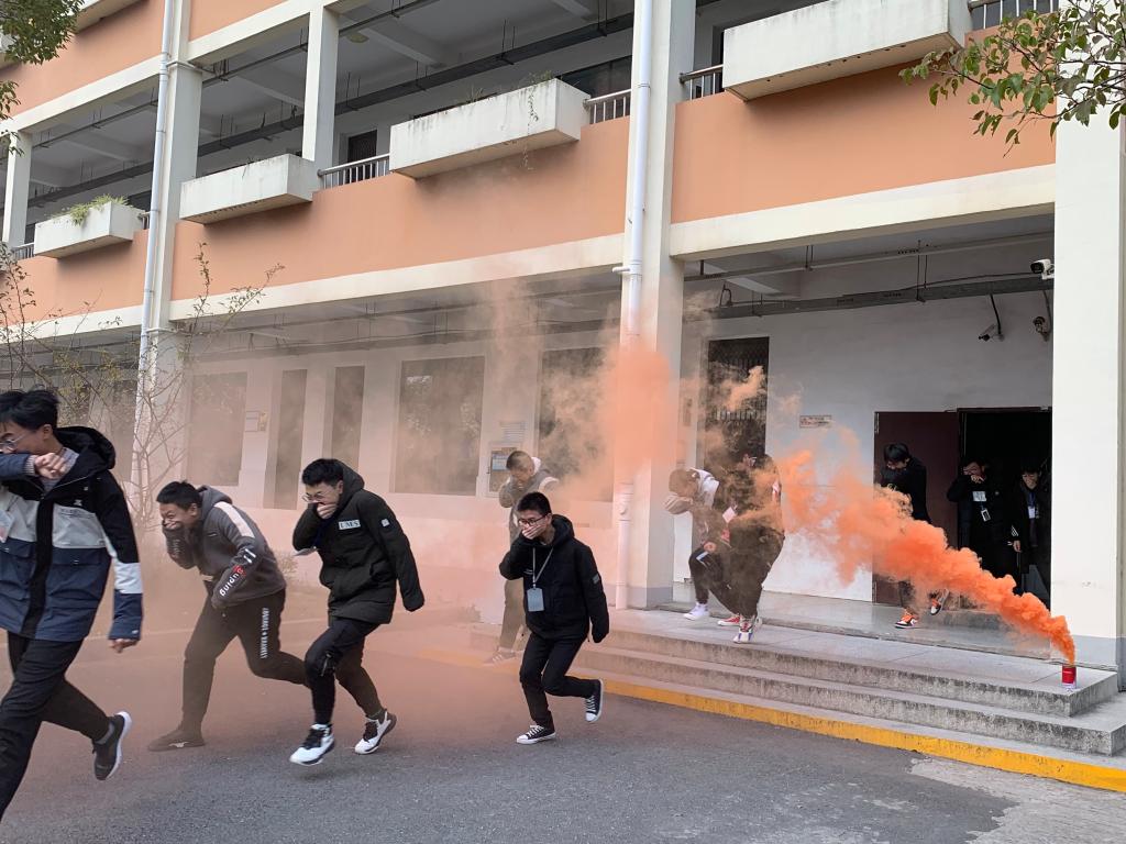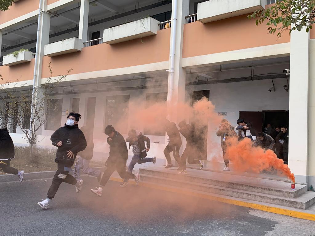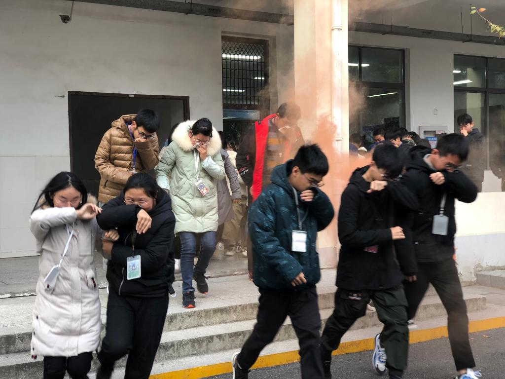 演练前,各班班主任先组织学生学习了防灾应急逃生知识,让学生熟悉紧急疏散的正确方法,讲明演练的程序、时间、撤离路线和纪律要求等。下午2点10分,随着警报的响起,学生在班主任和路段安全员的引导下,弯着腰,用袖子捂住口鼻,有序、快速地撤离教室,按预案规定的疏散路线撤到一号教学楼前并清点好学生数。疏散撤离演练了两遍,第二遍正式演练全专业部800多名学生仅用时两分三十五秒就全部撤离到指定场所,取得了良好的演练效果。