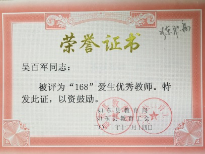 从教18年,他把全部时间和精力给了他热爱的工作,担任班主任工作12年,他秉着一颗求真务实之心,怀着一腔执着上进之情,为学生倾注了所有的心血和爱,在如东中专教育的沃土上辛勤耕耘,默默奉献,受到广泛赞誉。