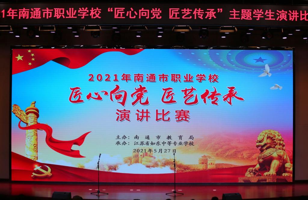 5月27日下午,由南通市教育局主办,如东中专承办的南通市职业学校“匠心向党、匠艺传承”主题演讲比赛在我校敬德堂举行。参加本次活动的有南通市教育局领导、各市县教育主管部门分管领导、职教科负责同志、各职业学校分管领导、各职业学校参赛选手及其指导老师。