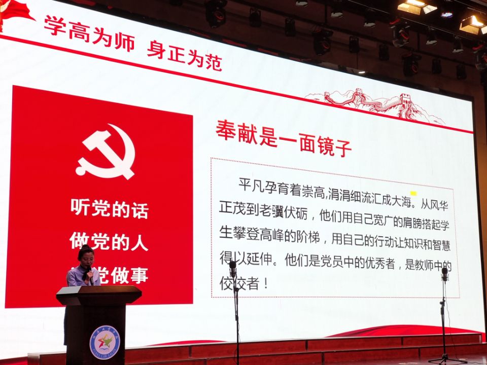 作为新时代的党员教师,更是承担着教书育人的神圣使命。主题党日活动还开展了师德主题宣讲,宣讲紧紧围绕“党性师德”的主题,讲述了本支部优秀党员教师们如何立足自身岗位,传承红色基因、弘扬红色文化、坚定理想信念、践行初心使命的先进事迹和感人故事,展现了新时代教师队伍的新担当、新作为、新风采。