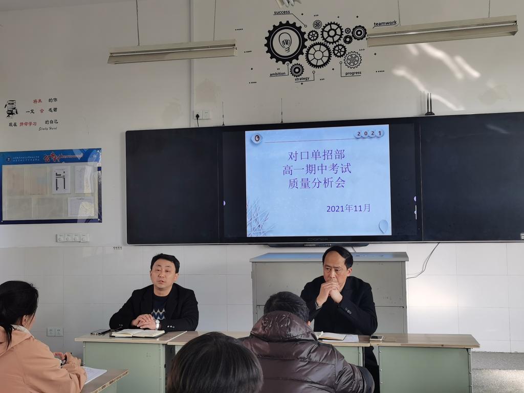 为发扬成绩,总结经验教训,进一步提升教育教学质量,11月25日下午,对口单招部在1号教学楼123教室召开了高一年级期中考试质量分析会。对口单招部花金明主任、宋丽华副主任,高一年级主任、年级组长及高一年级全体任课教师参加了会议。会议由高一年级主任于军主持。