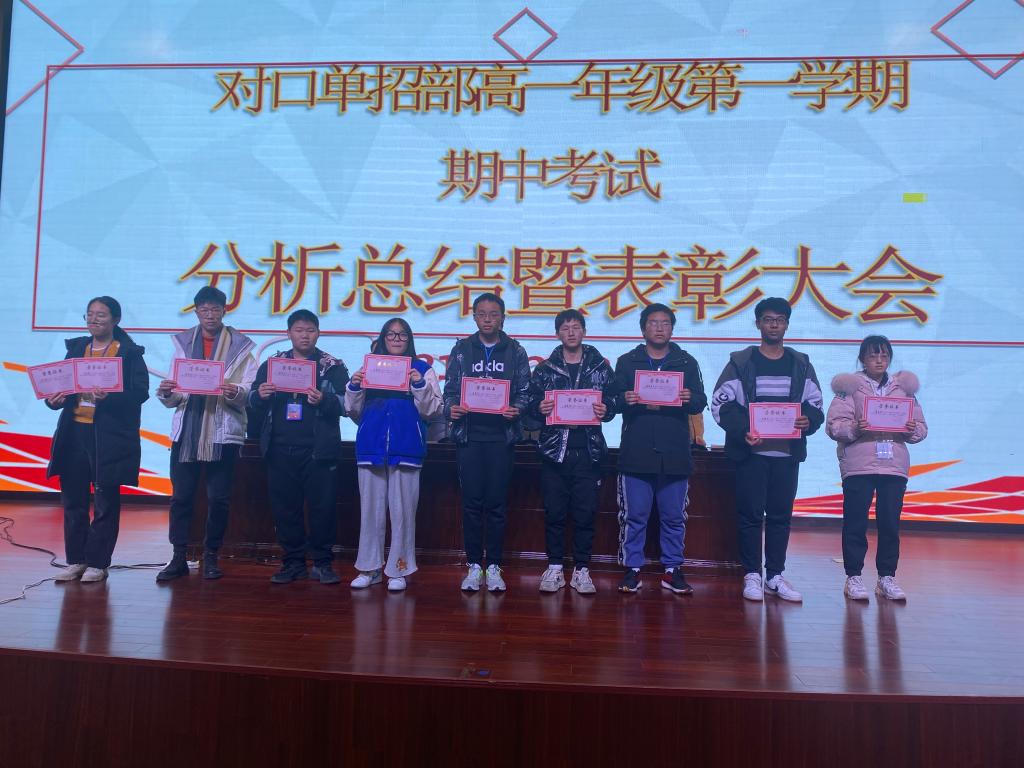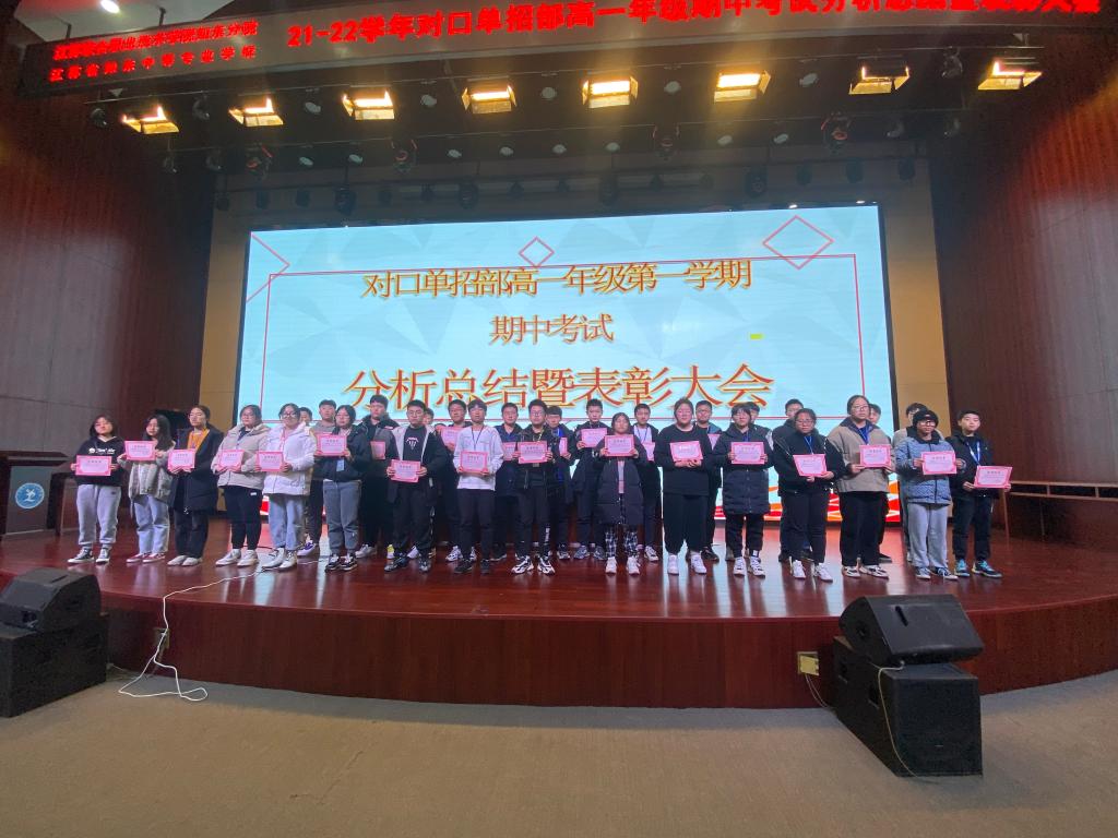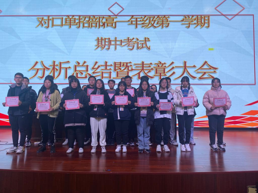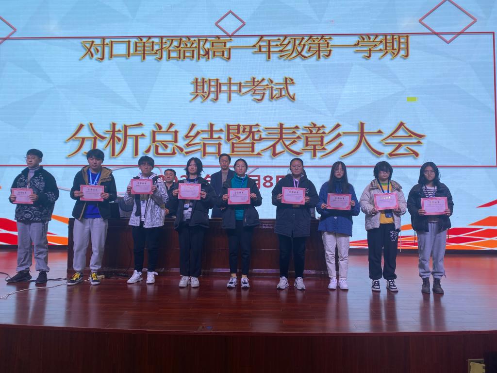 12月8日下午,对口单招部高一年级期中分析总结暨表彰大会在学校报告厅举行。对口单招部花金明主任、高一年级主任于军、高一年级全体班主任及全体学生出席了本次会议。会议由高一年级组长石晓娟老师主持。