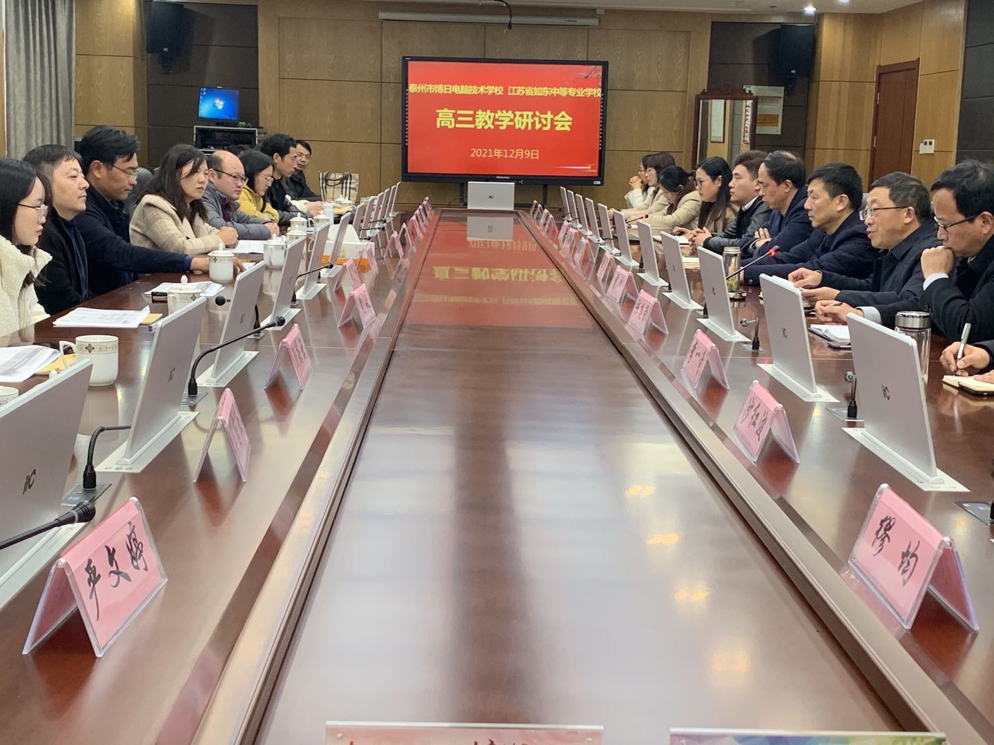 为了加强校际间的交流,实现教学活动的优势互补,总结推广先进的育人经验,2021年12月9日下午泰州市博日电脑技术学校陈校长一行11人来我学校考察,主要交流对口单招计算机和艺术专业高三一模的教学情况。