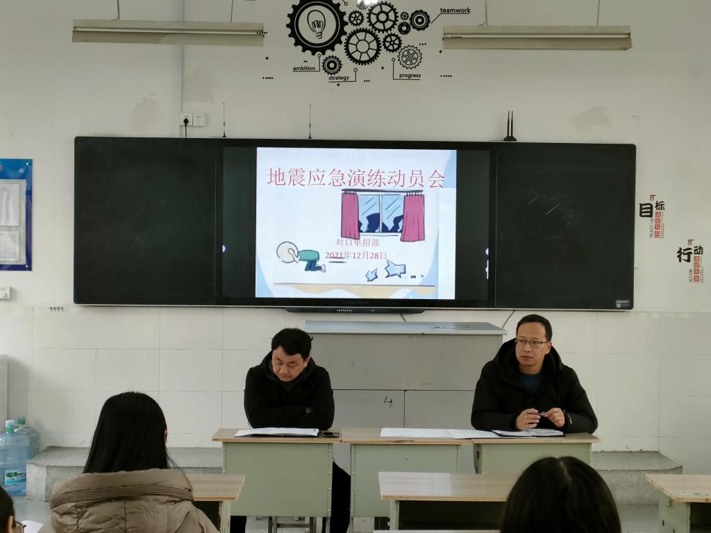 为了将演练活动做实做细,对口单招部制定了详细的方案,并在演练之前召开了“地震应急演练动员会”及班主任会。