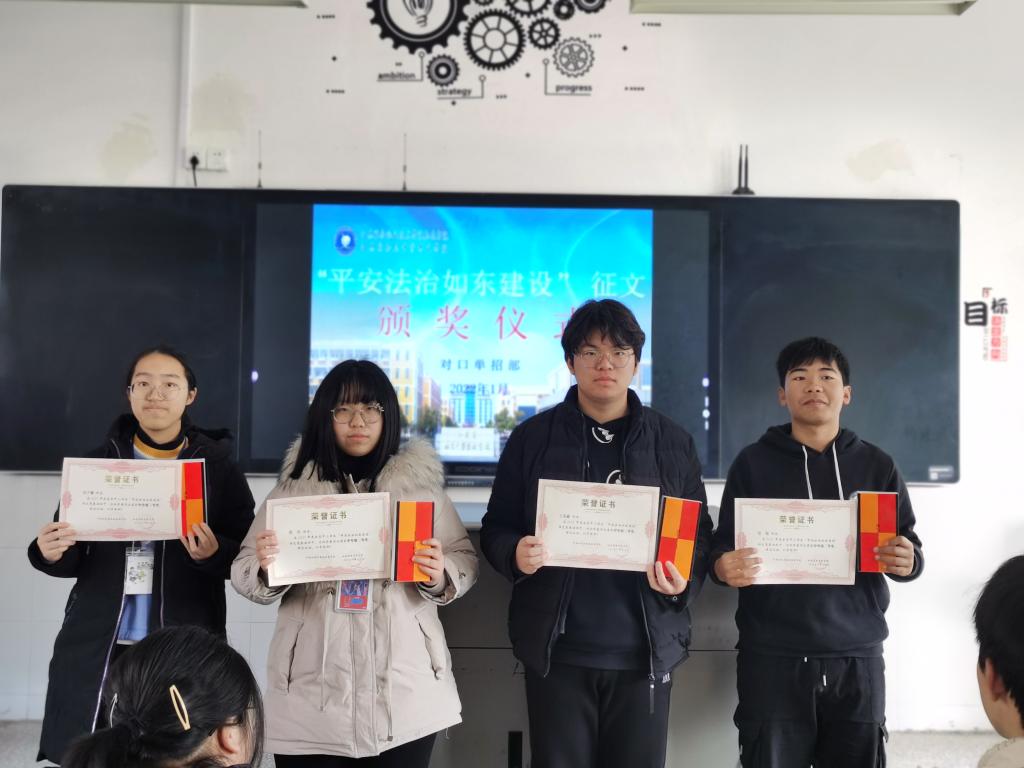 2022年1月6日,对口单招部在1号教学楼123教室举行“平安法治如东建设”征文颁奖仪式。