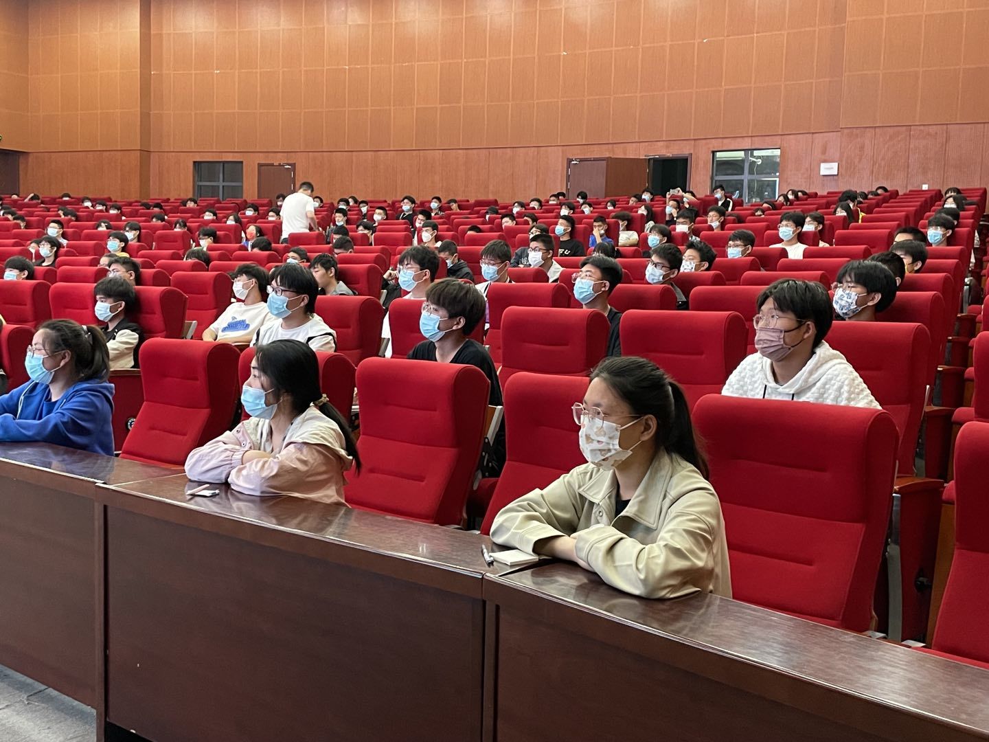 对口单招部组织了24名学生前往学校大报告厅聆听讲座,其余学生在班主任的组织下在教室利用腾讯会议观看。