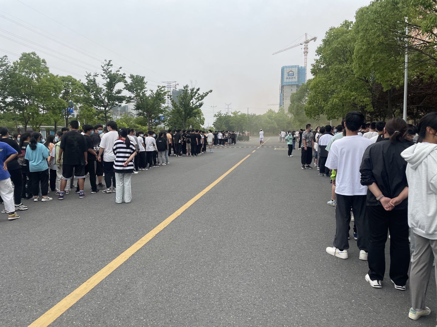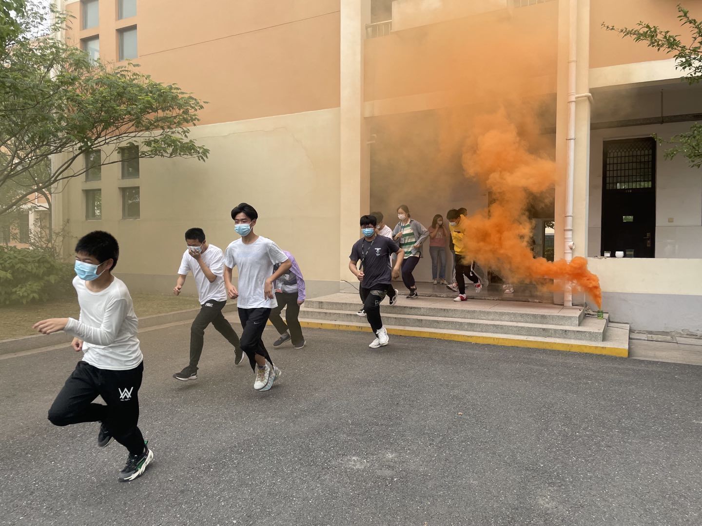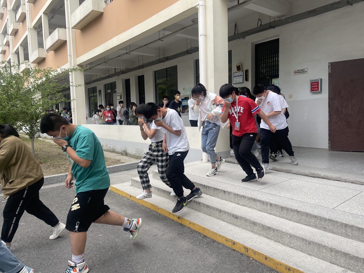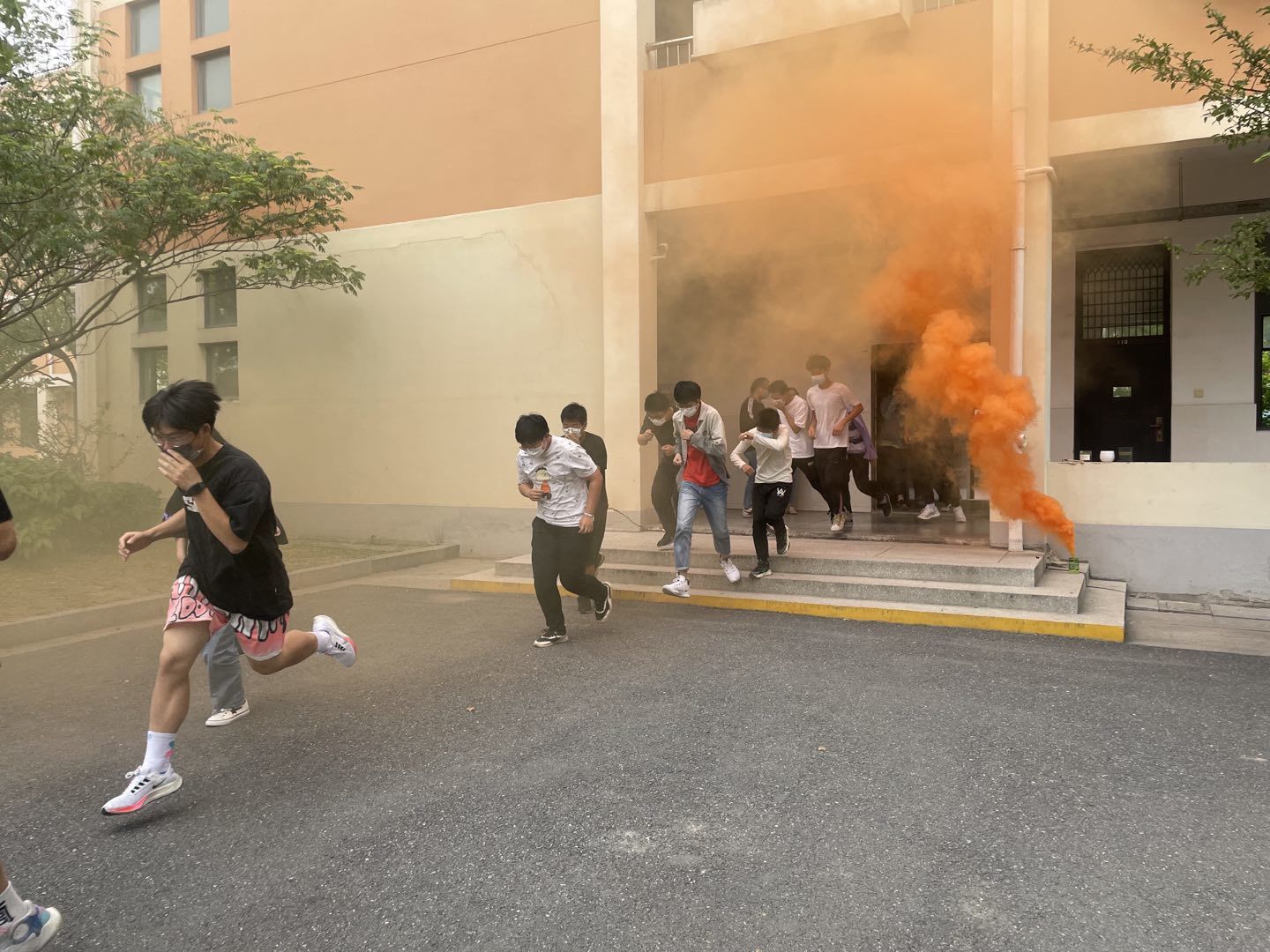 随着警报声的响起,高一、高二全体学生在班主任的指导下弯着腰,捂住口鼻,按照疏散演练方案设定的逃生路线,迅速而有序地到达指定安全位置。各楼层疏导员在楼道、楼梯口加以引导,防止学生在紧急疏散时出现相互推挤现象,确保学生安全。学生全部撤离到安全地带后,各班班主任迅速清点人数并向年级组汇报情况。本次消防应急疏散演习历时2分15秒,整个演练过程规范、有序、紧凑、高效。