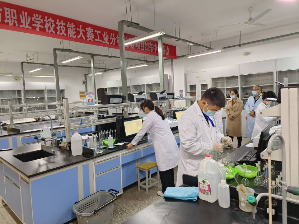 2022年南通市职业学校技能大赛由南通市教育局、财政局、人社局、旅游局、总工会、团市委、妇联、职教学会联合主办。我校对口单招部承办工业分析与检验项目,有来自全市5所职业学校的5名教师选手和10名学生选手齐聚我校,参加于11月4日至5日举行的比赛。