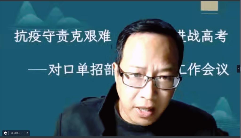 对口单招部副主任于军就近期班主任工作提出三点要求:一、落实一个常规,即班主任工作常规。班主任要做好学生的安全教育、心理健康教育,督促学生加强体育锻炼、增强体质,提高免疫力。二、做好两个宣传:自身健康防护宣传,疫情认知宣传。三、提醒三点关注:关注本班学生的舆情;关注学生与教师、家长之间的关系,做好情绪引导;关注学科之间的协调。