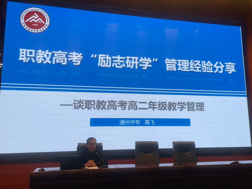 开幕式上,通州中专副校长高飞从四个方面进行了职教高考“励志研学”管理经验分享:一、研究分析学情,提高励志管理针对性;二、加强队伍建设,增强团队励志意识;三、构建励志教育全员体系;四、抓实励志细节,增强育人实效。