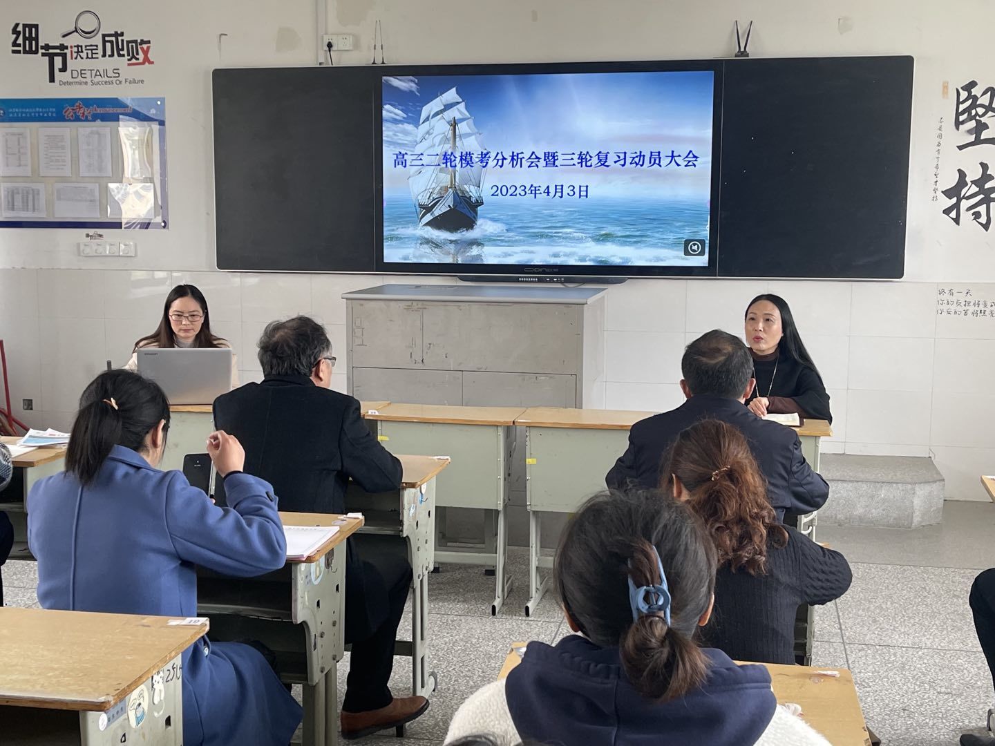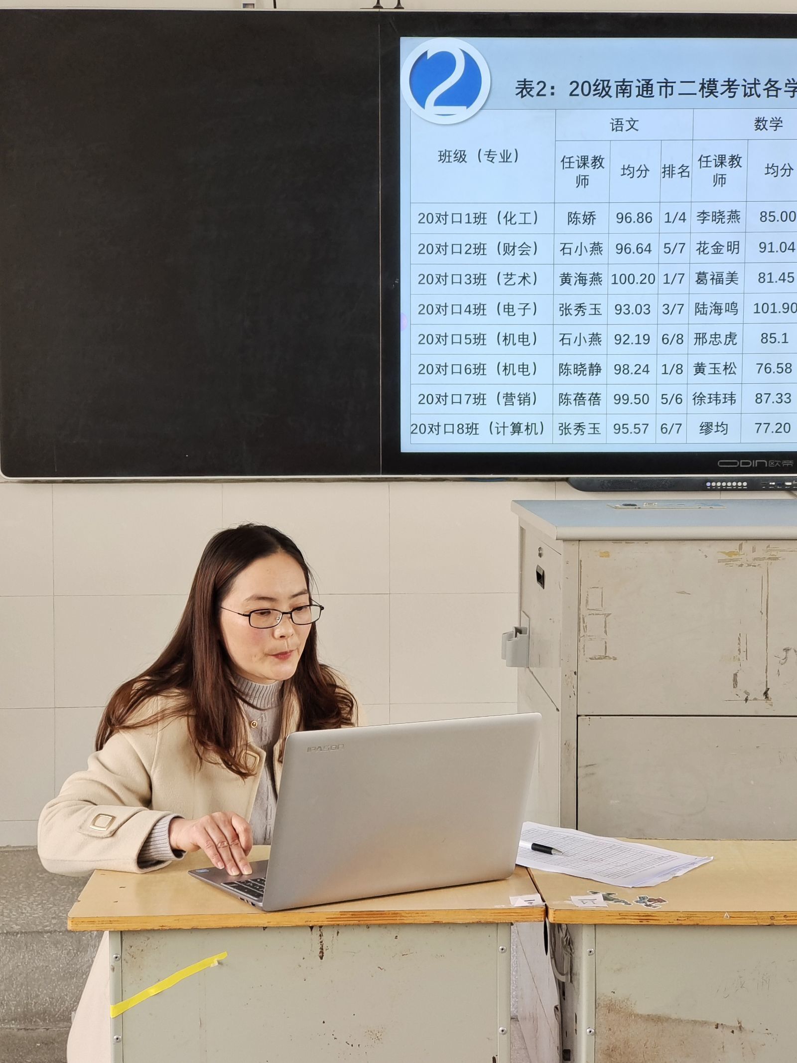 2023年4月3日上午,对口单招部在一号教学楼132教室召开南通市职教高考高三二轮模考分析会暨三轮复习动员会。学校副校长曹峰、对口单招部主任花金明、对口单招部党支部书记高三年级主任唐小慧,高三年级组长葛福美及高三全体任课教师参加。会议由对口单招党支部唐小慧书记主持。