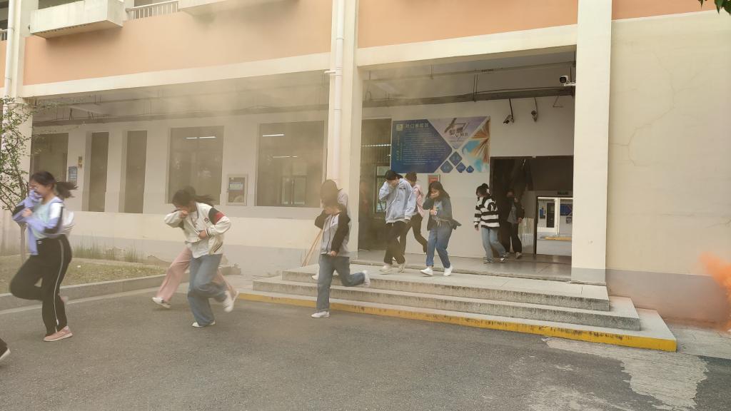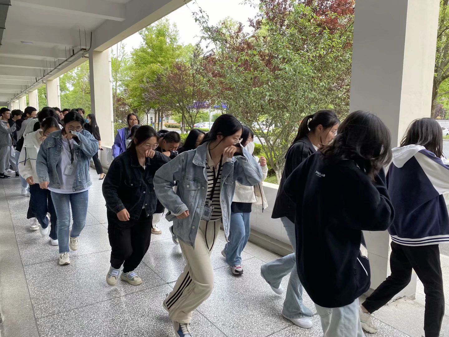 下午两点半,演练正式开始。警报声响起,全体同学在班主任的带领下,双手抱头,身体微曲,按照预先规定的应急疏散路线迅速、有序撤离。同时,各楼层疏导员在楼道、楼梯口加以指引、科学指挥、合理疏导,防止学生在紧急疏散时出现相互推挤现象,确保学生安全。学生全部撤离到安全地带后,各班班主任迅速清点人数并向年级组汇报情况。整个实战演练过程紧张有序,有条不紊。