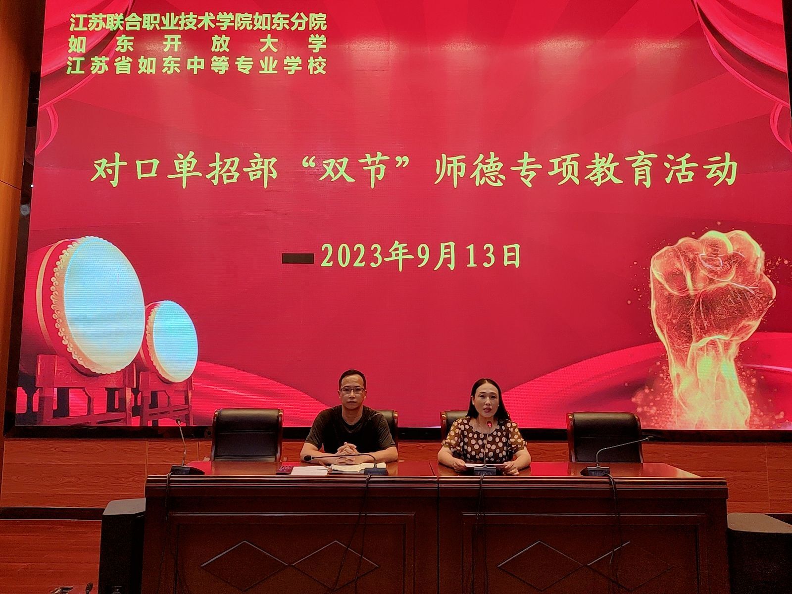为进一步弘扬高尚师德,努力提高教师队伍的思想政治素质、职业道德水平,深入开展“赓续红色血脉,写好时代答卷”师德主题教育活动,树立良好的教育形象,9月13日下午,对口单招部在学校敬业堂开展“双节”师德专项教育活动。对口单招部陆建荣主任、唐小慧书记、于军副主任、赵志鹏副主任及全体教学人员参加了会议,会议由唐小慧书记主持。