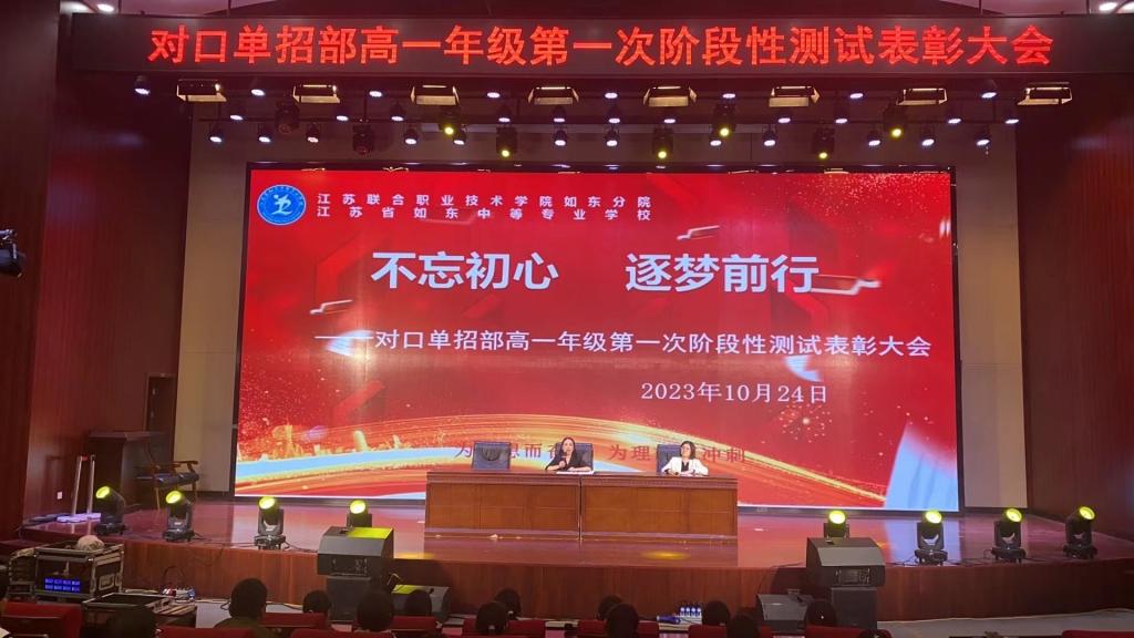 2023年10月24日下午第一课,对口单招部在如东中专敬德堂召开高一年级开学总结暨表彰大会。专业部唐小慧书记、徐玮玮组长、2023级全体学生及班主任参加会议。会议由徐玮玮组长主持。