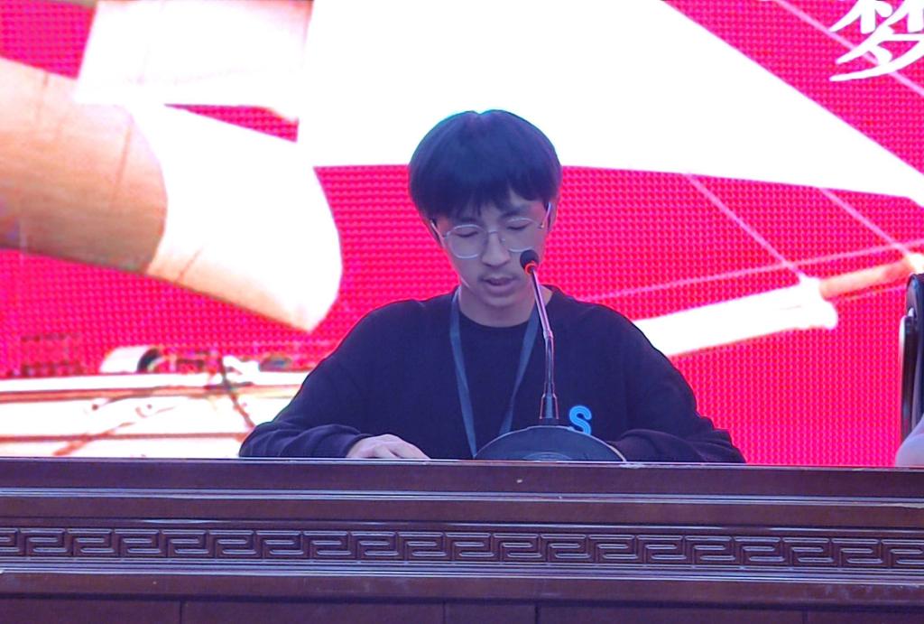 其次,22对口3班顾江豪同学作为学生代表发言。作为本次阶段性测试语数英总分全年级第一的他,分享了学习语数外的经验,他强调要摆正心态,勤奋自主,脚踏实地,强化训练,及时整理错题等。