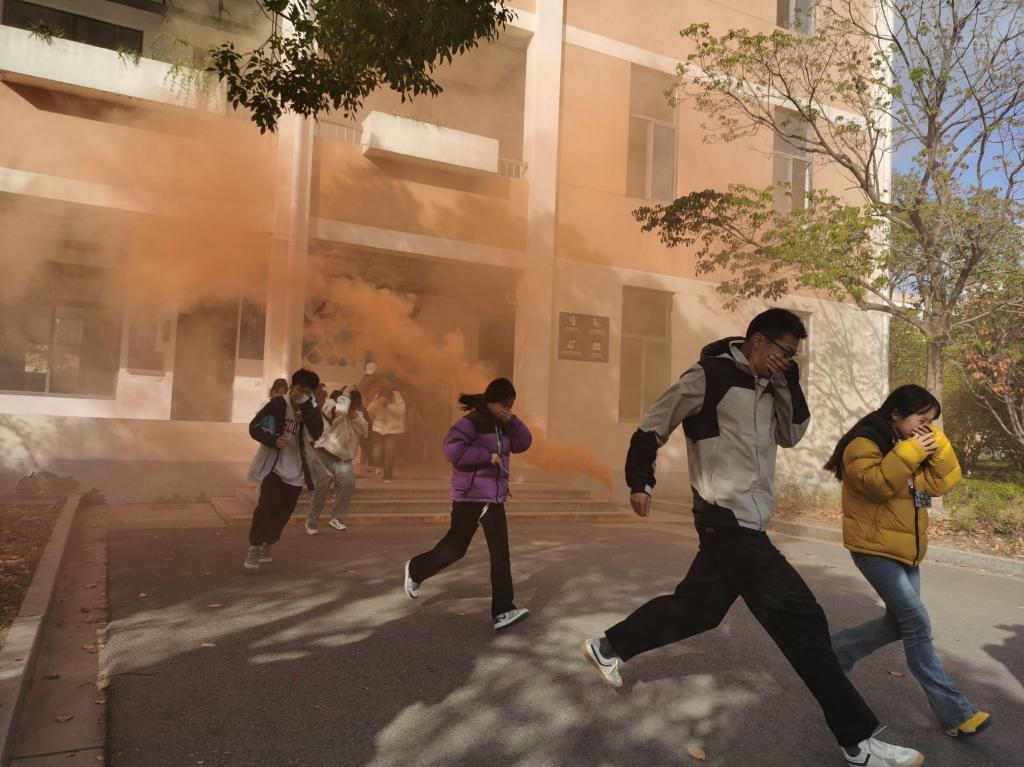 随着警报声的响起,全体学生在班主任的指导下,弯着腰,捂住口鼻,按照疏散演练方案设定的逃生路线,迅速而有序地到达指定安全位置。各楼层疏导员在楼道、楼梯口加以引导,防止学生在紧急疏散时出现相互推挤现象,确保学生安全。学生全部撤离到安全地带后,各班班主任迅速清点人数并向年级组汇报情况。本次应急疏散演习历时3分31秒,整个演练过程规范、有序、紧凑、高效。